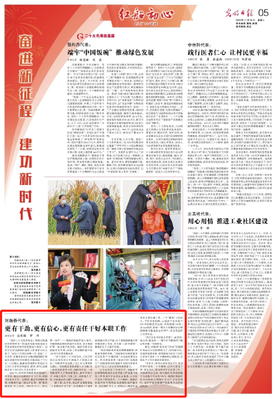 “學(xué)習(xí)黨的二十大報告時,工友們特別關(guān)注報告里關(guān)于技能人才的相關(guān)表述。”劉婉春告訴記者,“當大伙兒看到報告提出,‘加快建設(shè)國家戰(zhàn)略人才力量,努力培養(yǎng)造就更多大師、戰(zhàn)略科學(xué)家、一流科技領(lǐng)軍人才和創(chuàng)新團隊、青年科技人才、卓越工程師、大國工匠、高技能人才’時,興奮地直拍大腿!”劉婉春說。
