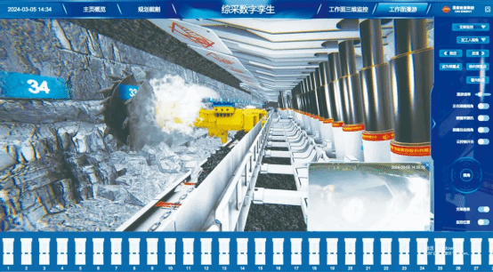 圖為位于陜西省榆林市的國(guó)家能源集團(tuán)國(guó)神公司三道溝煤礦井下綜采工作面生產(chǎn)數(shù)字孿生場(chǎng)景。